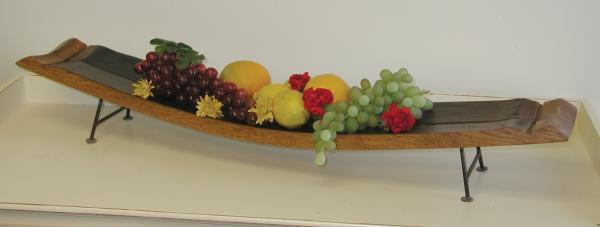 Tabletop server made from a larger (they all differ) recycled wine barrel stave and wrought iron feet. Let your imagination be your guide.