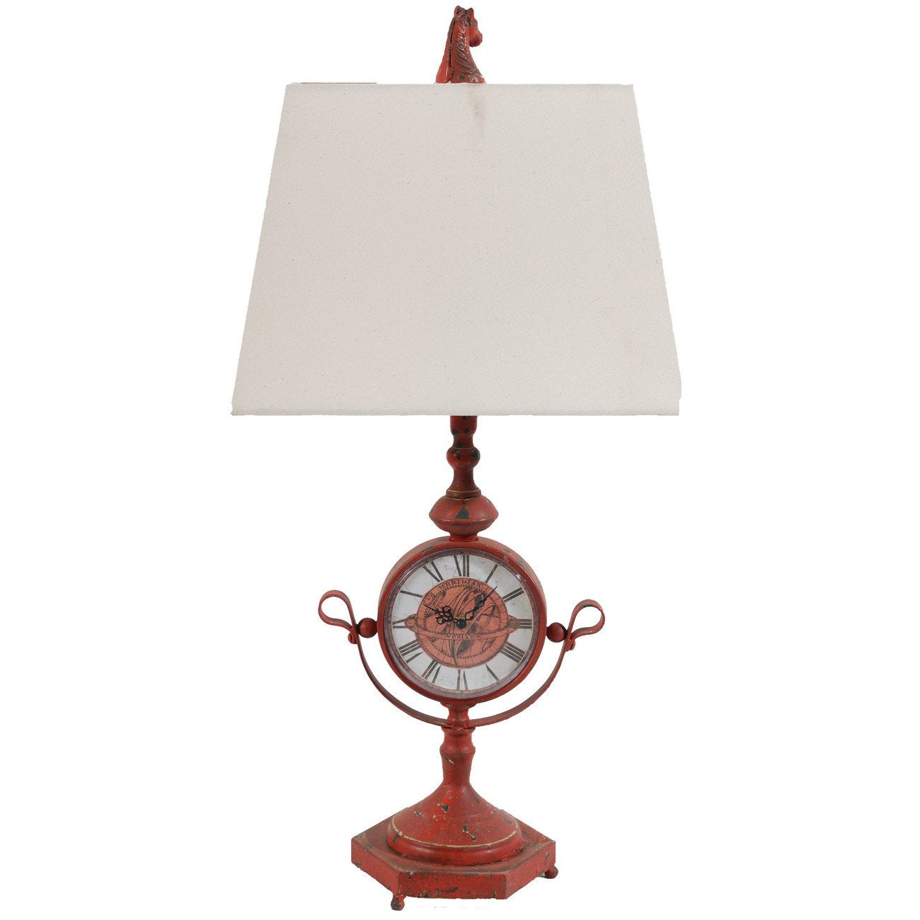 The elegant design of this lamp features a clock faced detail on its base.