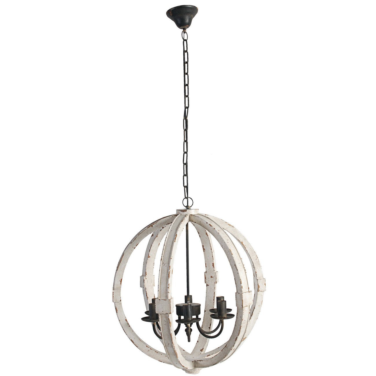A dramatic, stunning way to light up entryway, porch, hallways, dining room or eat-in kitchen. This beautiful Wood-Metal Global Chandelier will add an elegant touch to your home decor. Finished in antiqued white.