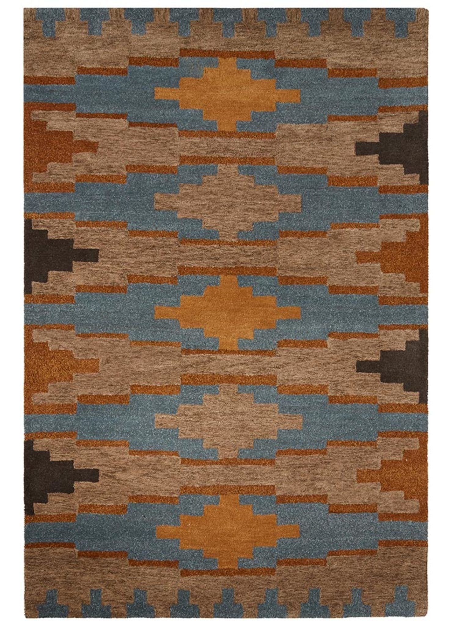 With symbolic patterns that enliven Native American pottery, beadwork, and baskets, this hand-tufted wool rug, with it saturated color and strong motif, will add updated western style to rustic décor.