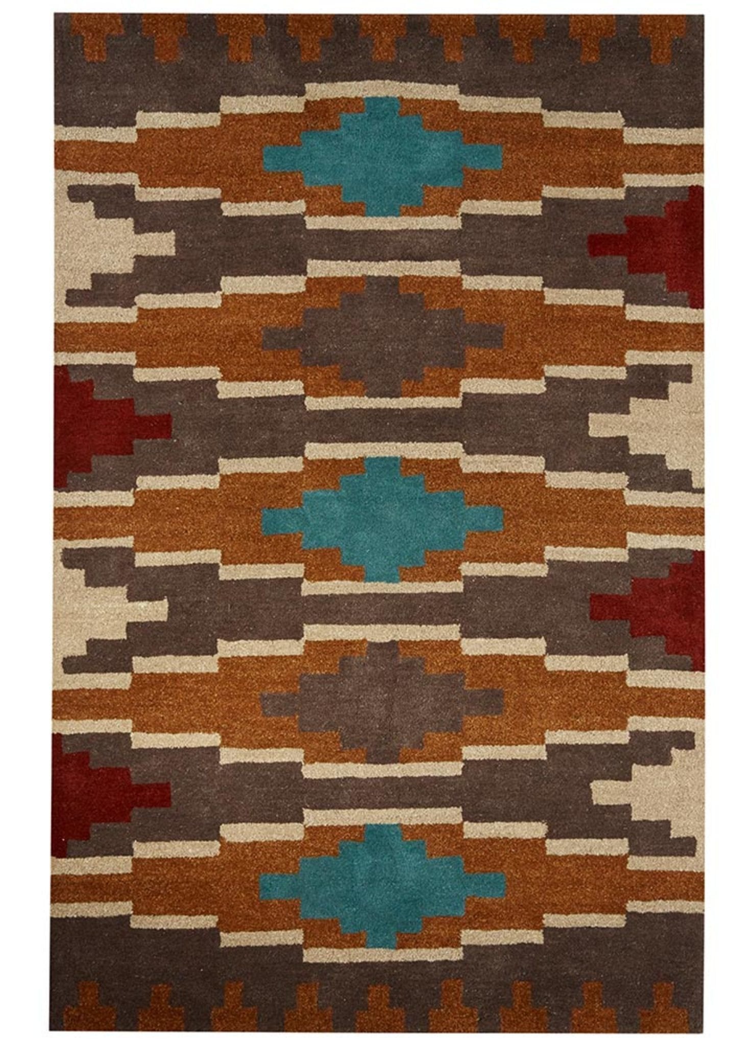 With symbolic patterns that enliven Native American pottery, beadwork, and baskets, this hand-tufted wool rug, with it saturated color and strong motif, will add updated western style to rustic décor.