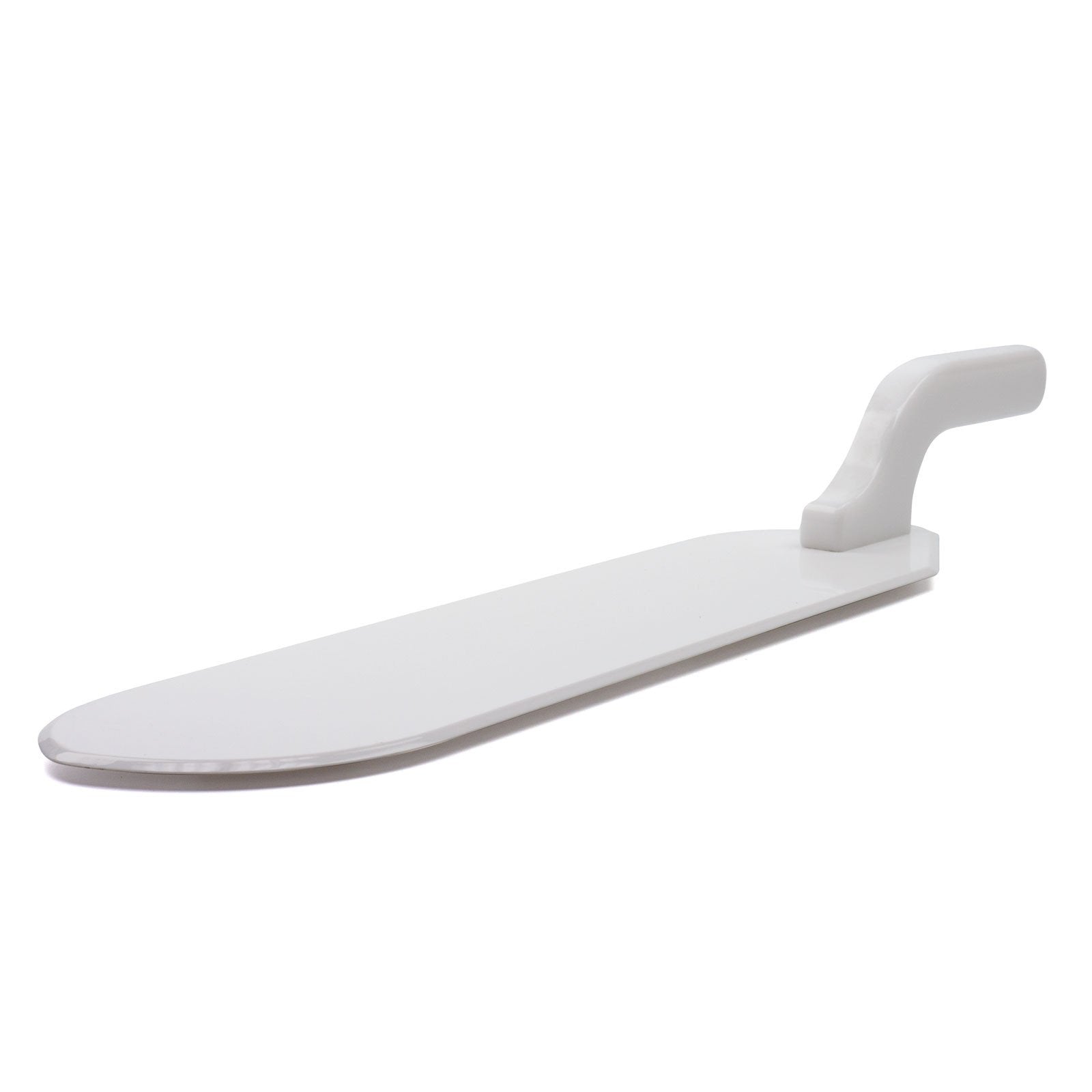 This is our casino grade professional croupier Baccarat (Chemin de Fer) Paddle. This long thin plastic paddle enables the dealer (croupier) to slide the cards, cash and chips around the table to the players. This is the same paddle that is used in the plush baccarat pits around the world. This paddle is made of of beautiful white acrylic and measures 4.25 inches wide by 22 inches long.