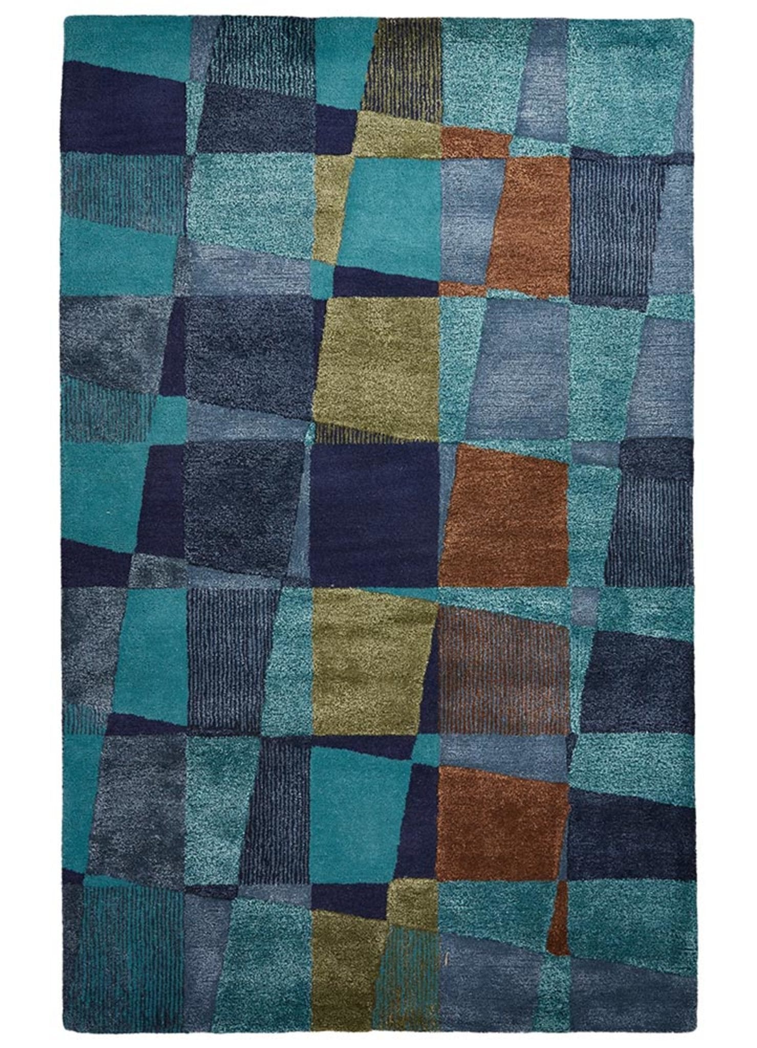 Combining fluid lines with highly textured hand-tufting, this durable, easy care rug in rich shades of pacific and dress blues is constructed using a plush mix of tufted wool and art silk for a lustrous finish.