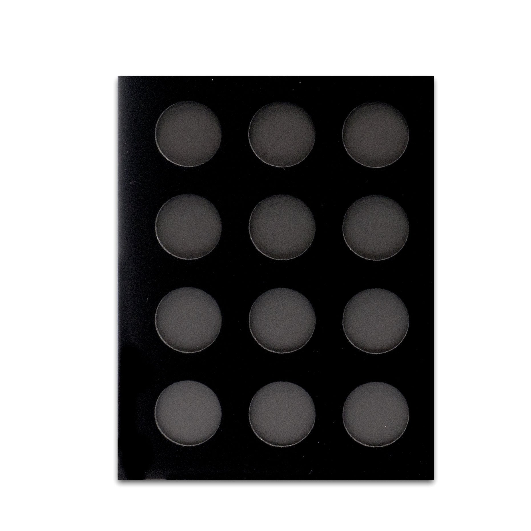 These are our black velvet Poker Chip Display Boards suitable for framing. Save money and make your own casino chip display frames! These boards have a 4mm black velvet foam surface to highlight the color of your chips  Holds 12 to 63 standard 39mm casino chips. Each board comes paired with a heavy-duty backer board. The foam top is die cut to ensure a perfect fit for your collectibles every time. These display boards will fit standard picture frames. Made with pride in the USA!