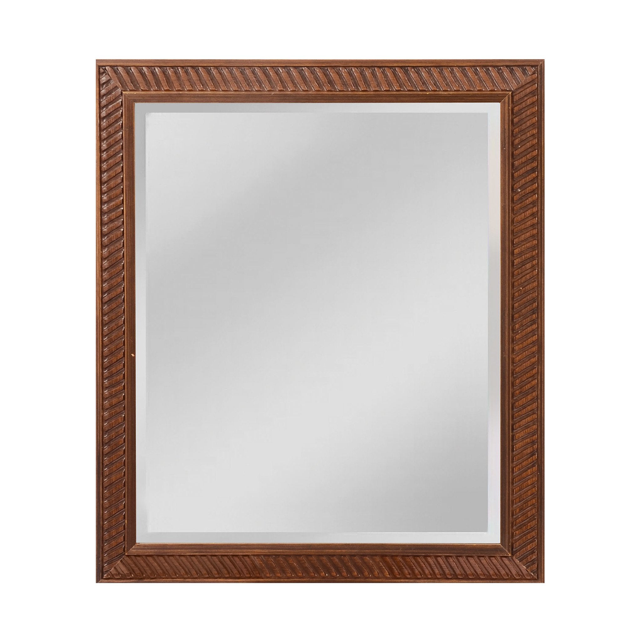 An angled carved wood frame gives visual depth to this traditional-style beveled mirror.