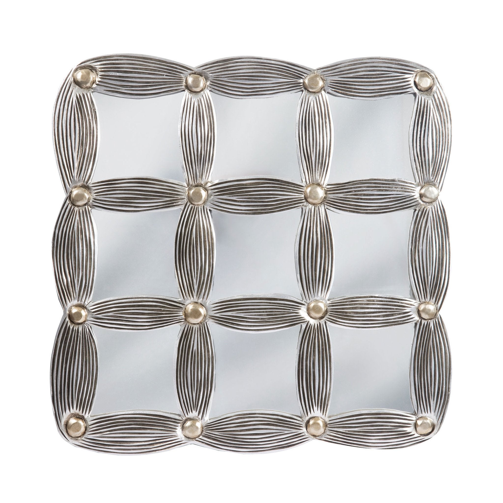 The distinctive nine-section drape design on the frame with rosette accents transforms this mirror into functional wall art.