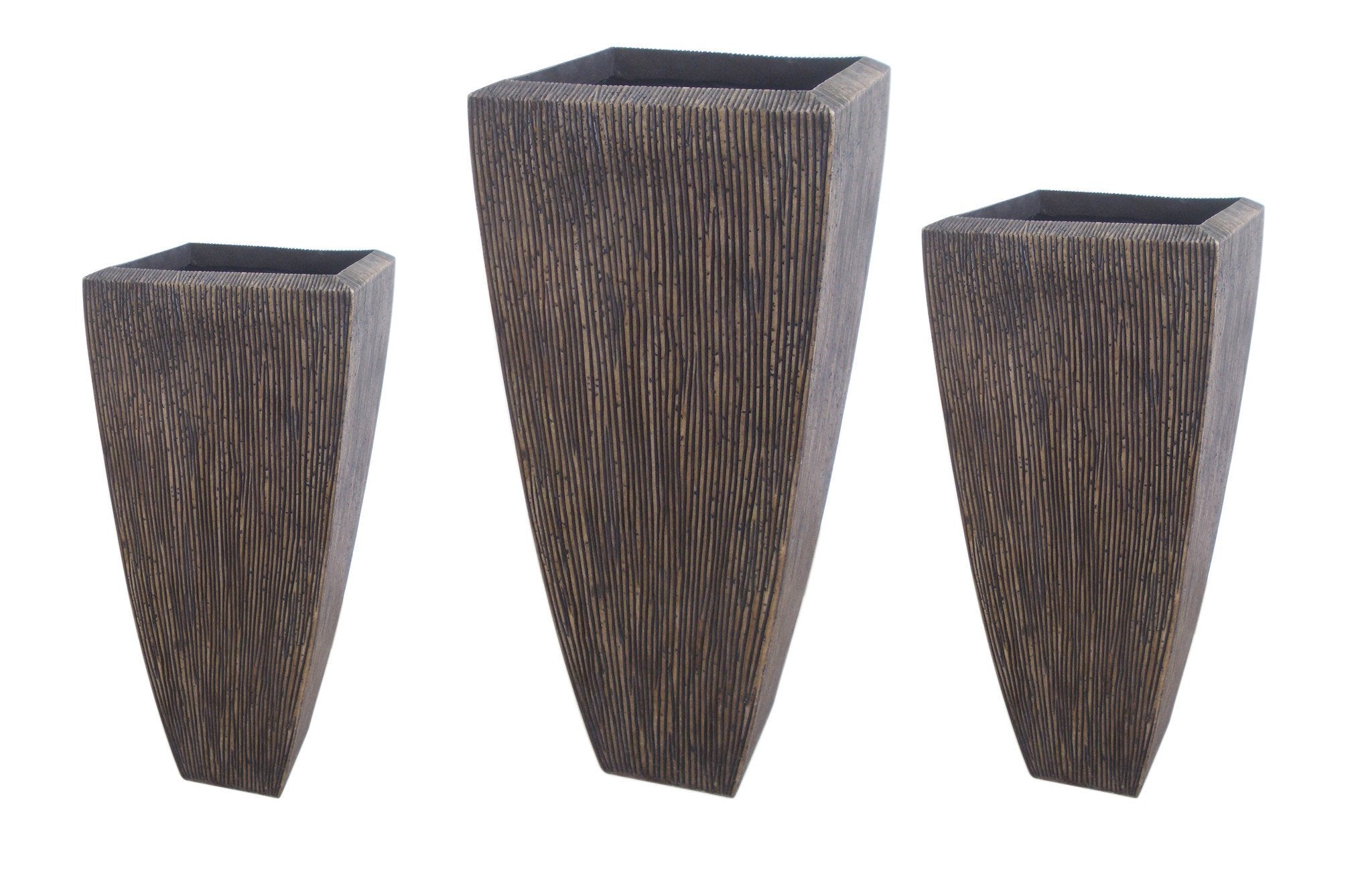 Sandstone Ribbed Long Square Planter with coppery finish, 3/Set, with three different highth: 24", 32", 39".