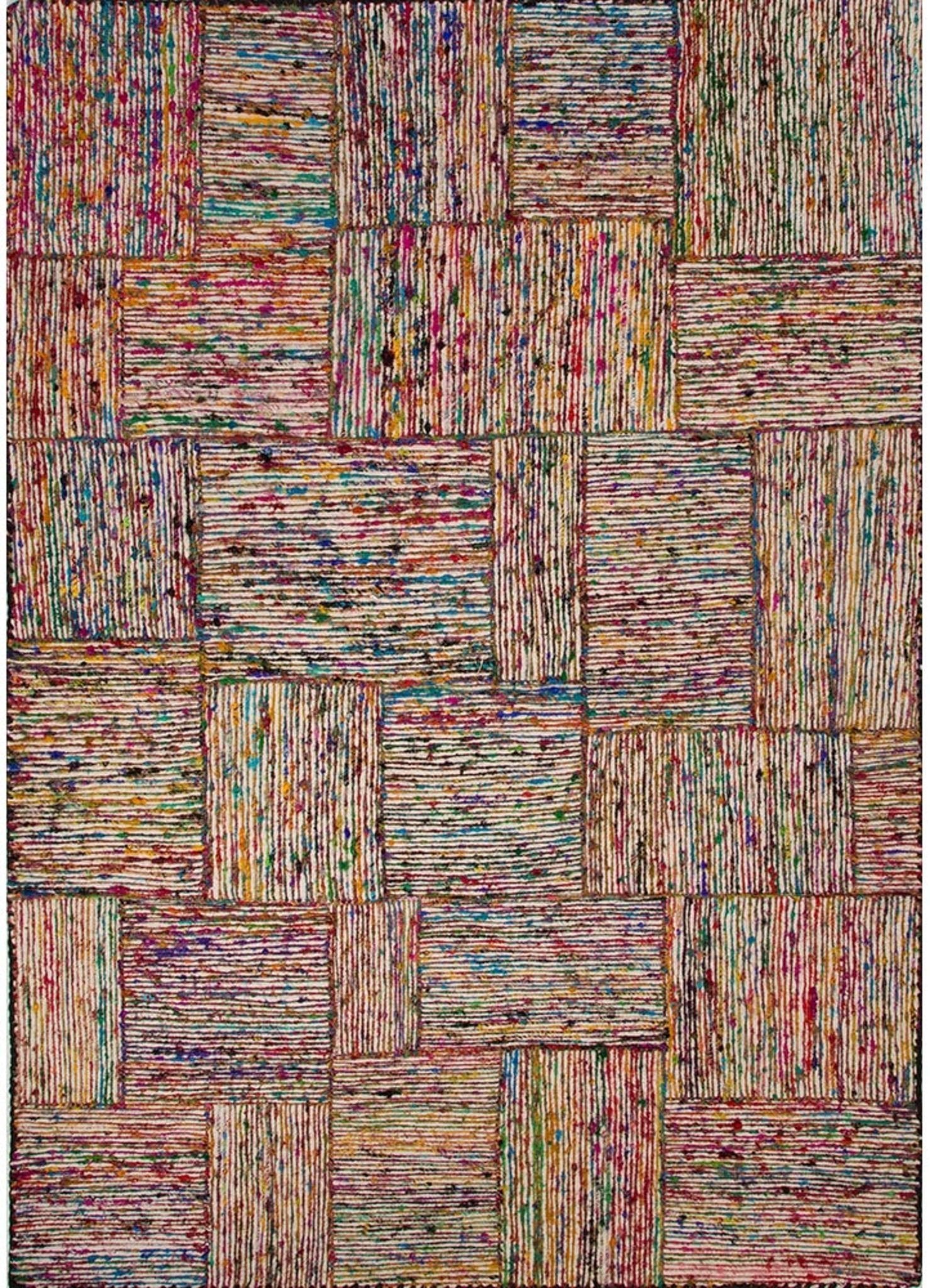 Hand woven in India of recycled silk, each of these hand-woven flatweave rugs with a unique combination of colors. Thanks to the intrinsic beauty of multicolored silk yarns, no two rugs are ever the same, making each design a striking artistic expression