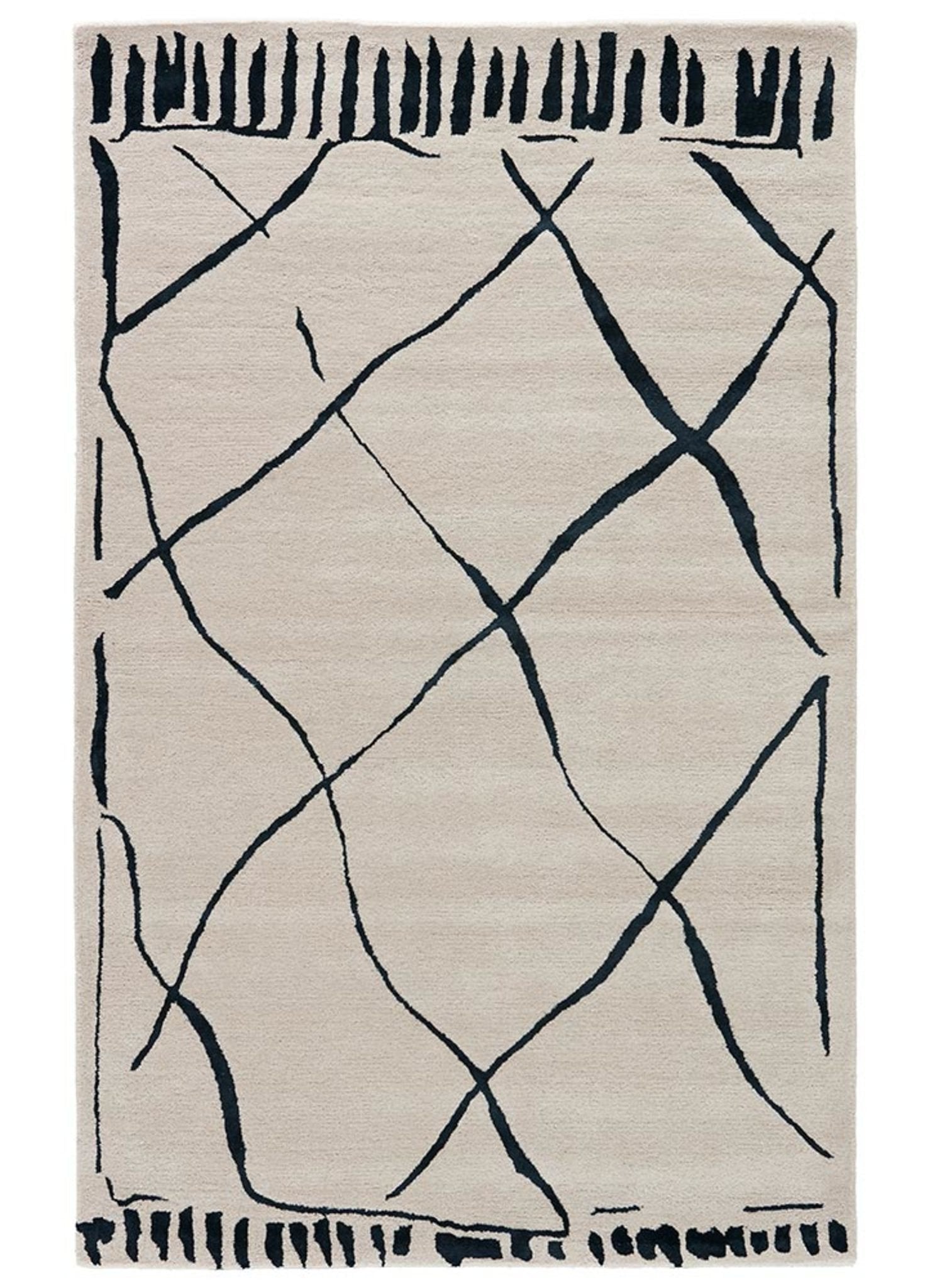 Every room should give guests a little wink. we love the painterly trompe l'oeil lines of this two-tone rug.