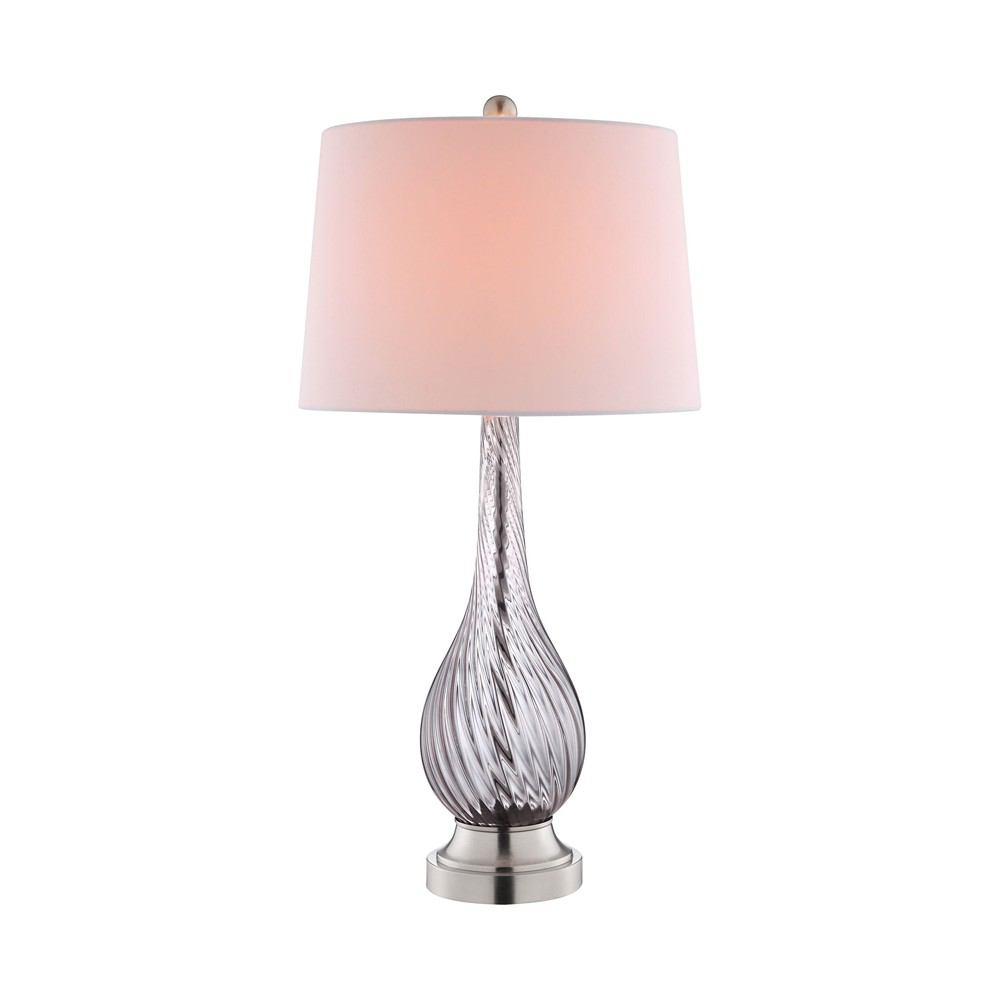 Light violet swirled bulb-shaped glass table lamp. Pewter round metal base.
