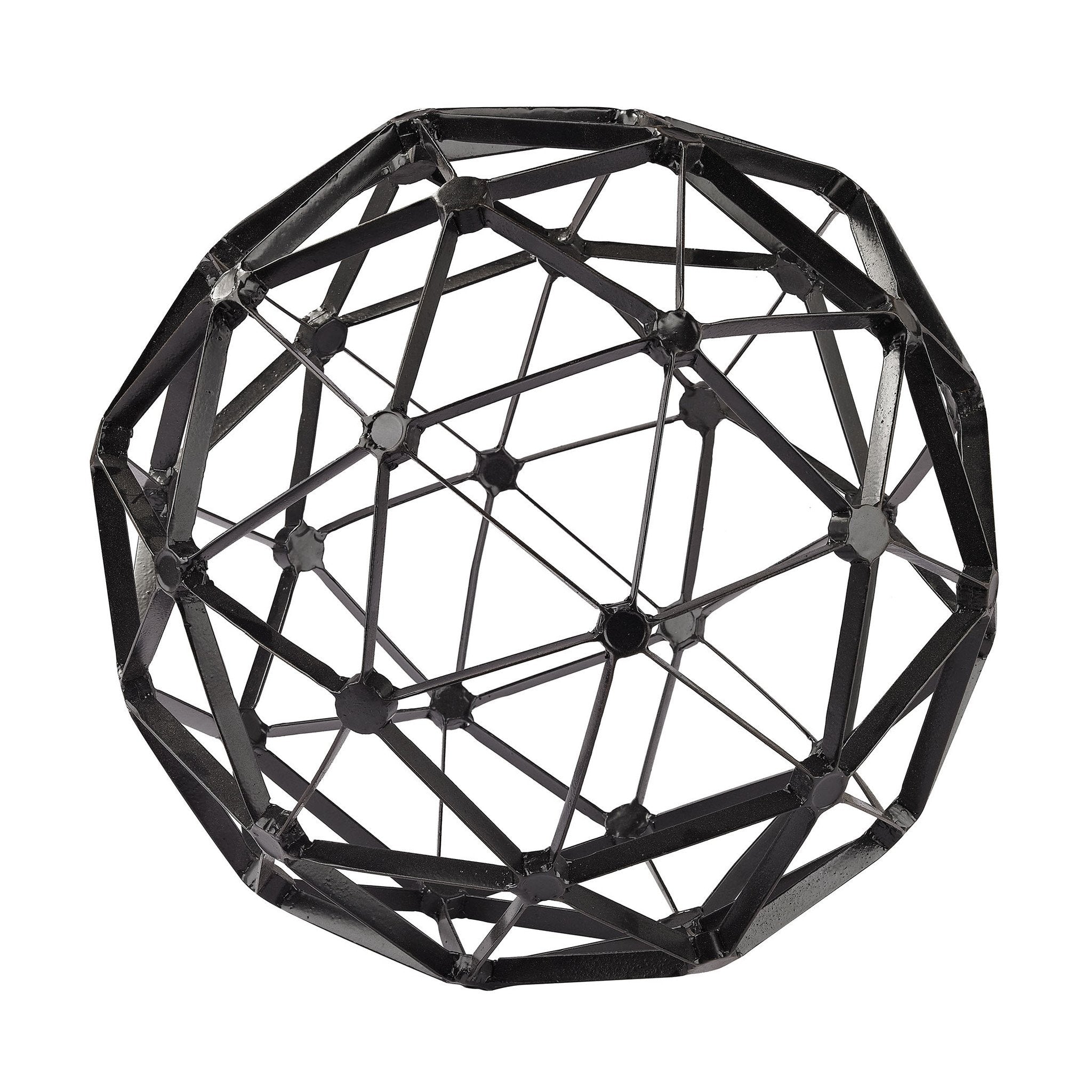 This metal orb gives a modern finishing touch to a console or table, its open lattice design is reminiscent of a laboratory model.