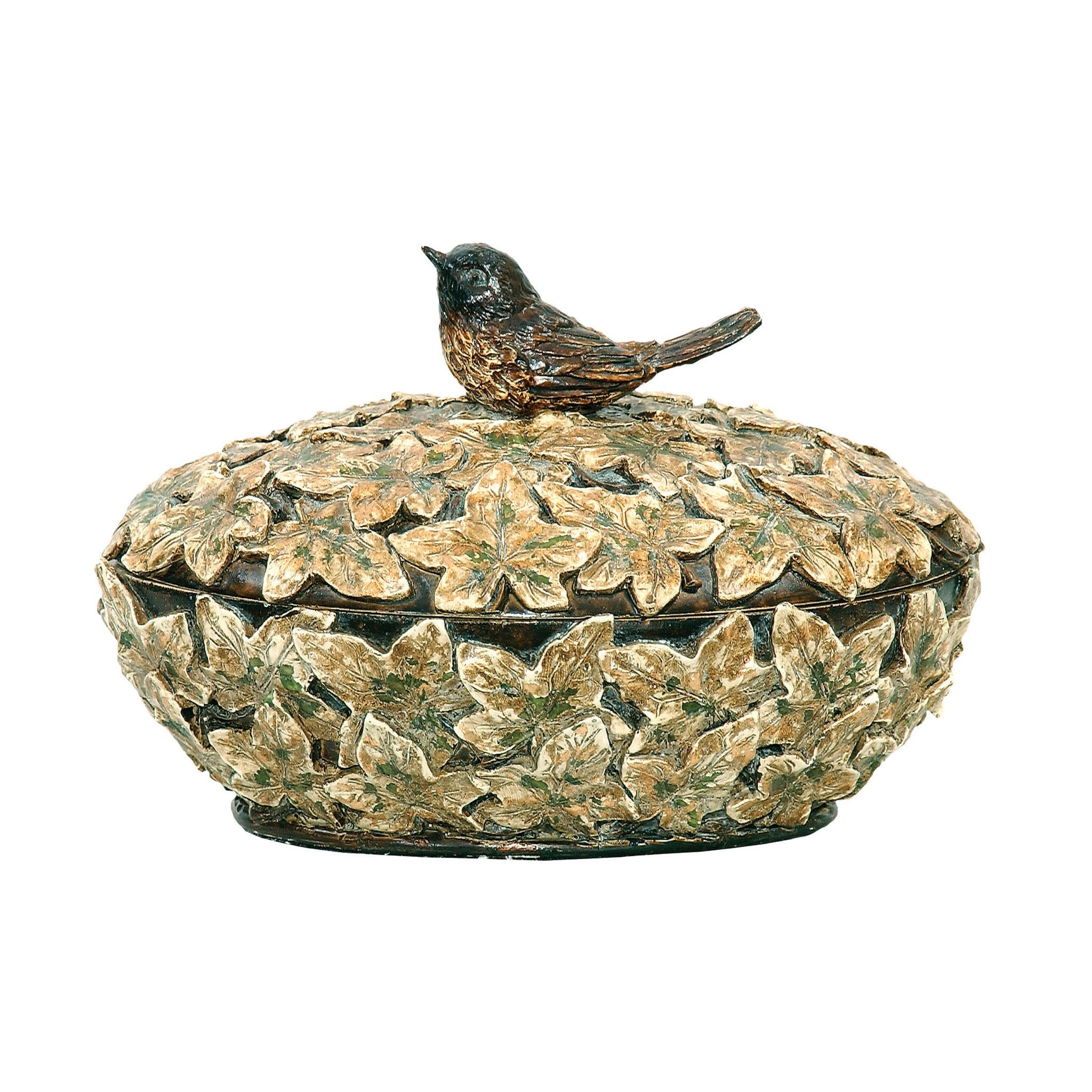 Sterling's Charming Decorative Box With Cover Has Delicately Embossed Ivy Leaves All Over And A Pretty Finch Sits On Top Of The Cover And Serves As A Handle. You Can Use This To Store Keys, Loose Change Or Other Small Objects. Great For Display On A Table In The Living Room, Bedroom, Or On Any Shelf In Your Home. Box Has A Beautiful And Life-Like Painted Finish. It Measures 4.75 Inches Tall And 7.5 Inches Long X 5.5 Inches Wide.
