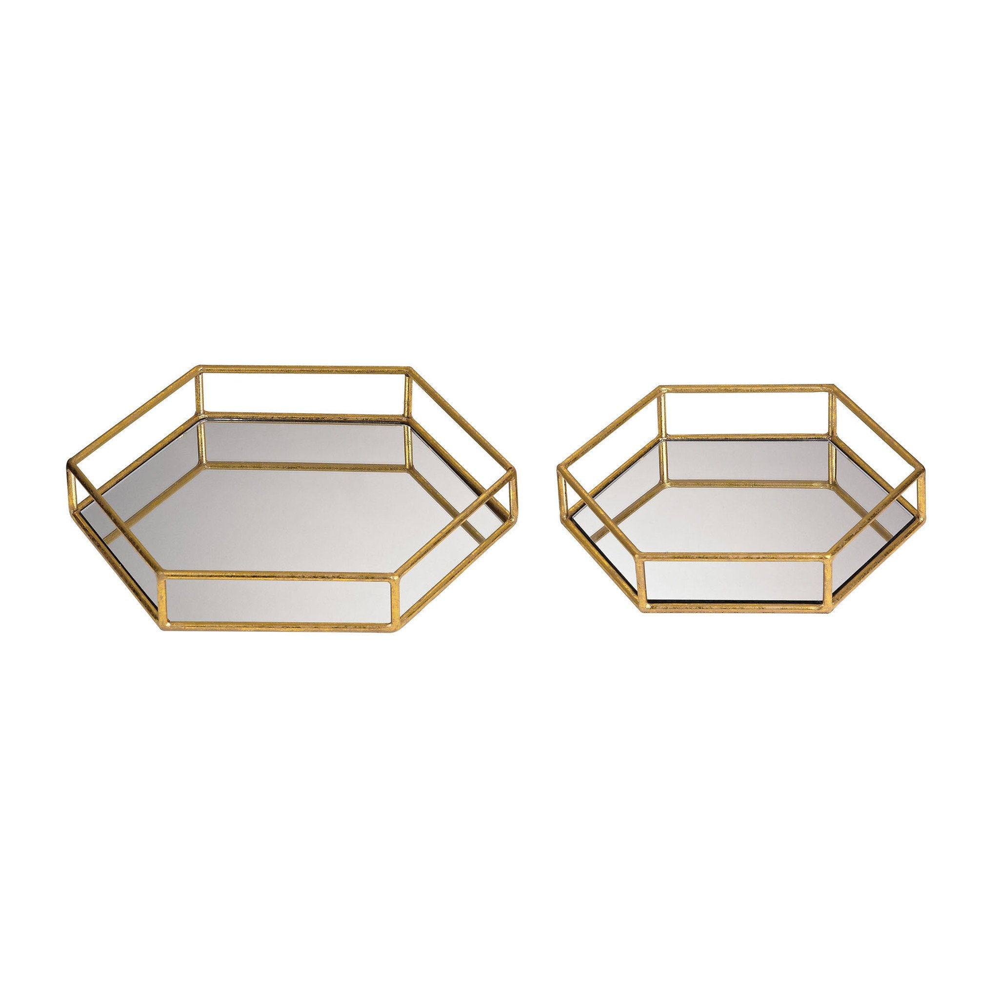 Sterling Industries Set of 2 Mirrored Hexagonal Trays