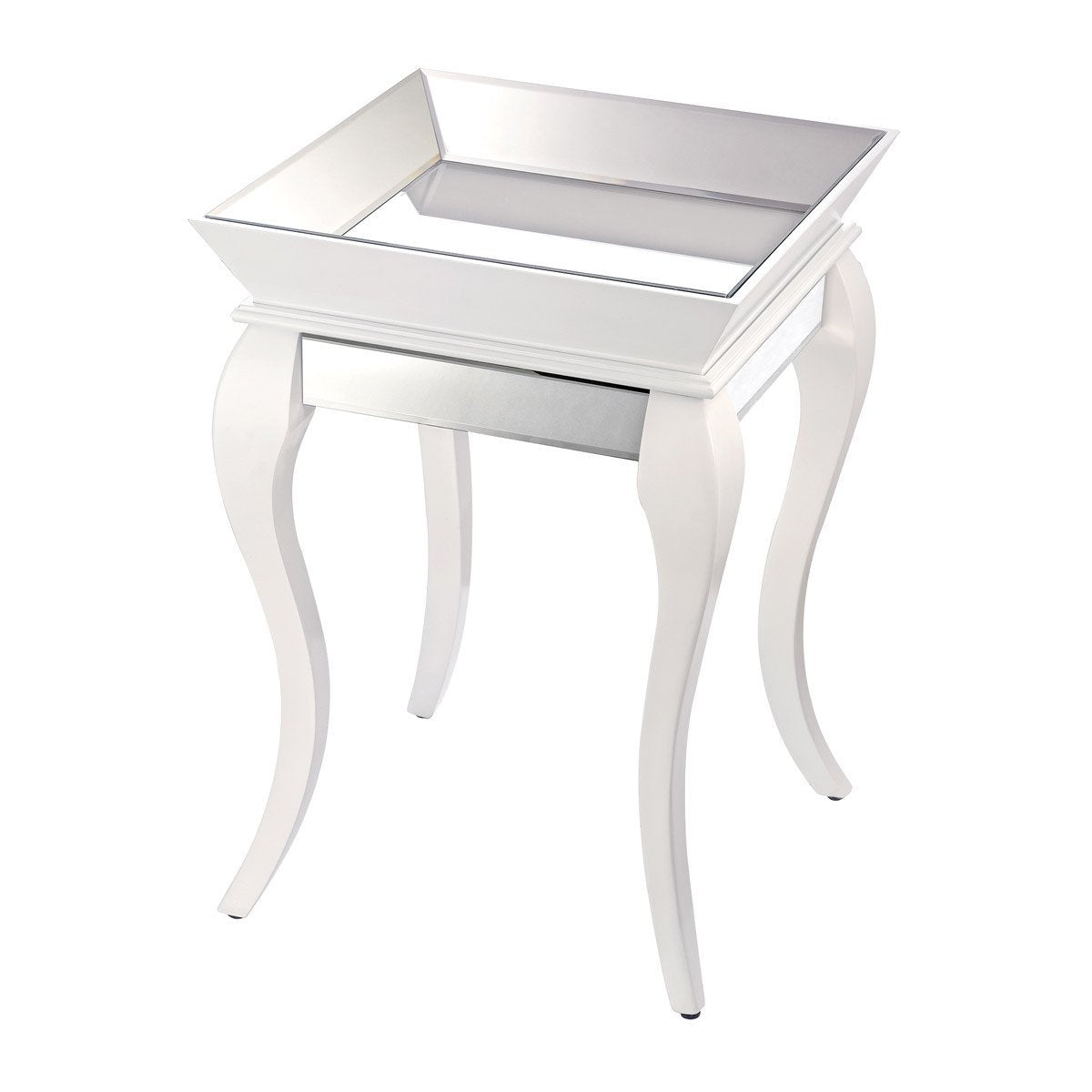 This modern side table is finished in white gloss and high quality mirror, curvaceous legs soften the silhouette and make it versatile.