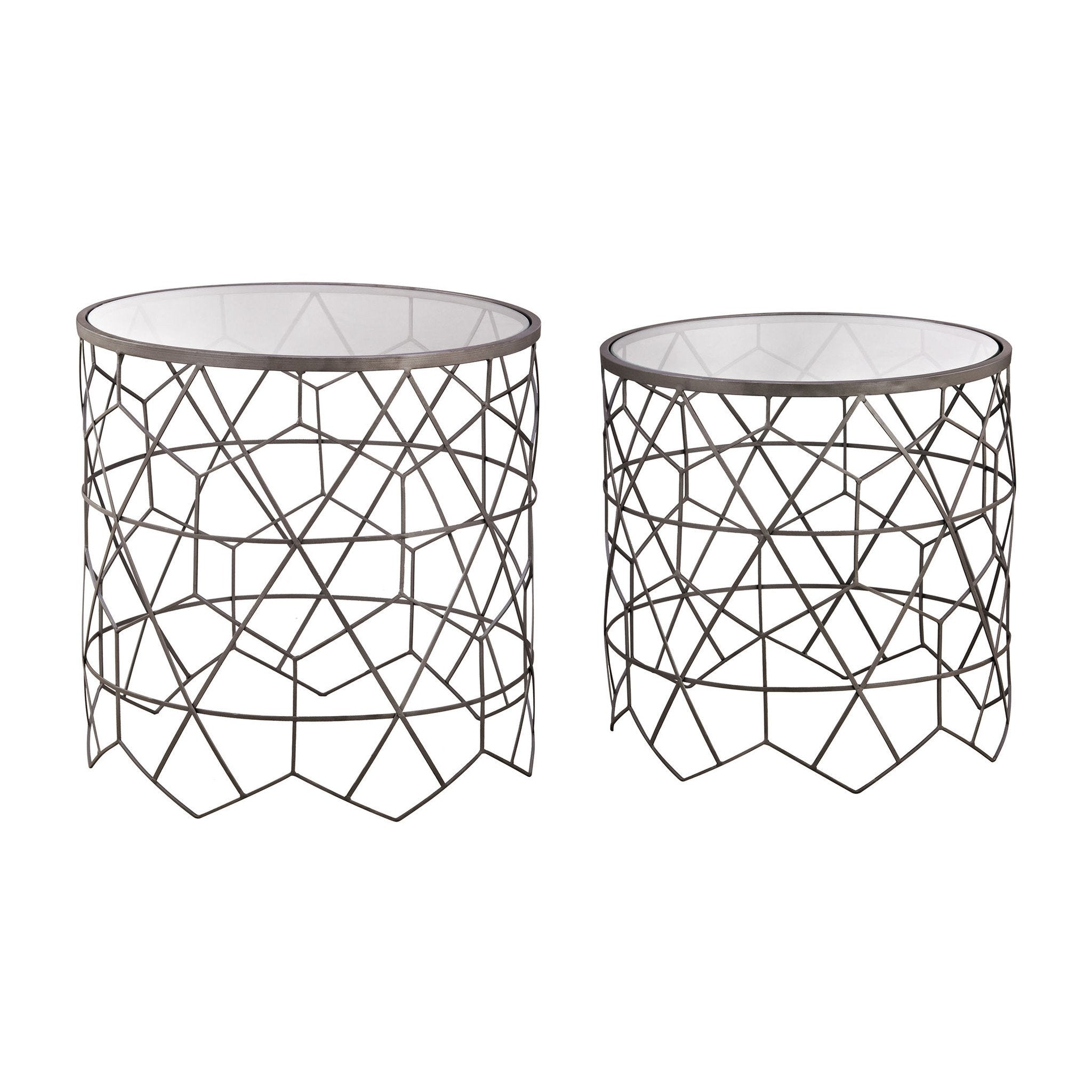 A study of geodesic architectural theory inspired the unique structural cohesion of our Vector Series Set of 2 Side Tables, whose sparkling glass surfaces allow us to fully view the dynamic network of interconnected vectors beneath. Stylish Black color story. Ideal for today's eclectic-chic design spaces.