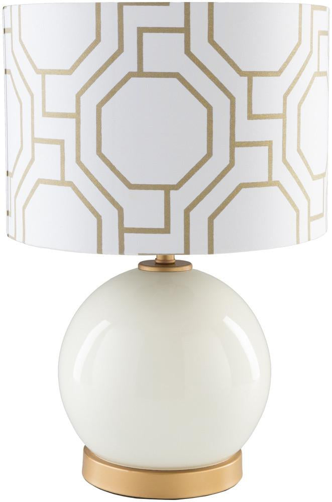 Change the feel of your room with the simple change of the lighting. Bowen Table Lamp is just the change you need. The smooth solid black glass sphere base presents a boldness that is accented with the white and black patterned polyester drum shade.